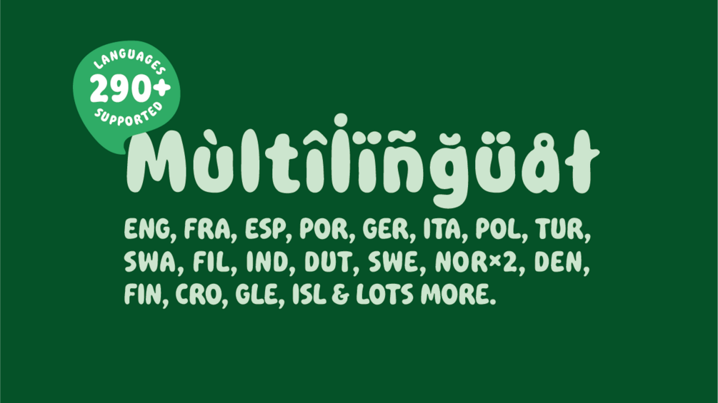 It’s designed to support a wide range of languages—whether you’re crafting in English, French, German, Italian, Spanish, Portuguese, Turkish, Polish, Swahili, or another, QUATSCH has you covered! Altogether, it supports over 290 languages based on the Latin alphabet, from major to lesser-known tongues, making it perfect for multilingual projects and creative expressions.